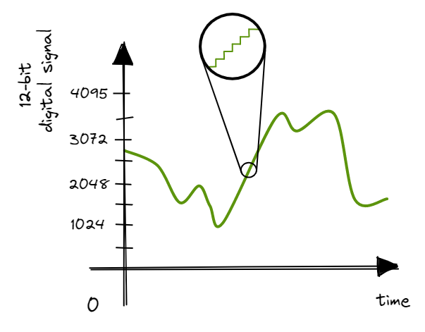 The world we live in is inherently analog. Physical quantities are continuously variable. Time flows continously as an infinite sequence of moments. On the other hand, computers are digital, representing information using bits such that information must be discrete. As such, how do we reconcile the digital computer with our analog world? We accomplish this digitization through two methods: discretisation (amplitude quantization) and sampling (time quantization).