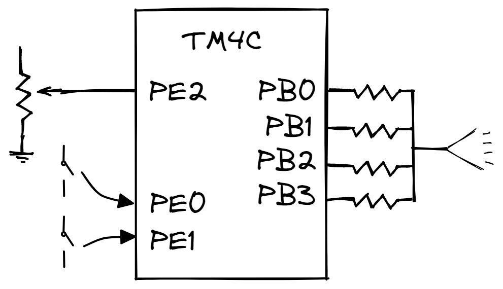 Next, let’s see how we should build the electrical circuit to faciliate these 4 I/Os. First, let us build a schematic diagram: