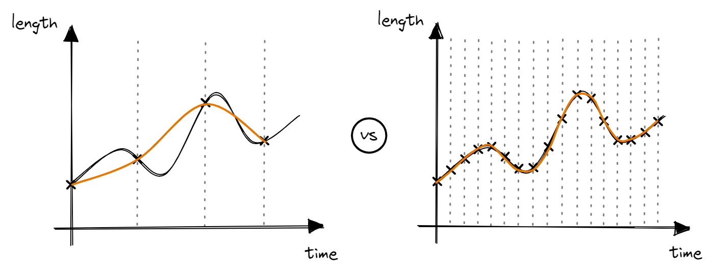 However, similar to discretization, you might realize that the sampled measurements will not 100% accurately represent the analog values across a time period. Intuitively, the faster the sampling rate, the more faithful the digital representation is with regards to the analog signal. Note that increasing the sampling rate comes at a cost of more processing per unit time.