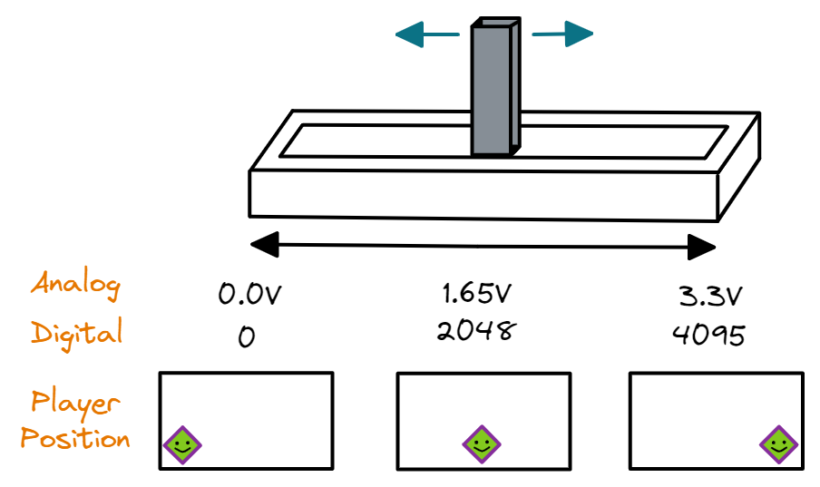 - ADC: Uses a slide potentiometer to control the x-position of the player