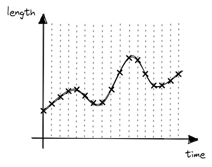 Just like physical quantities, time can also be thought of as a continuous variable. Between any two points in time there are an infinite number of moments in time. Given a fixed amount of memory, it is impossible for a computer to record measurements for an infinite number of moments in time. As such, computers sample measurements at some rate.