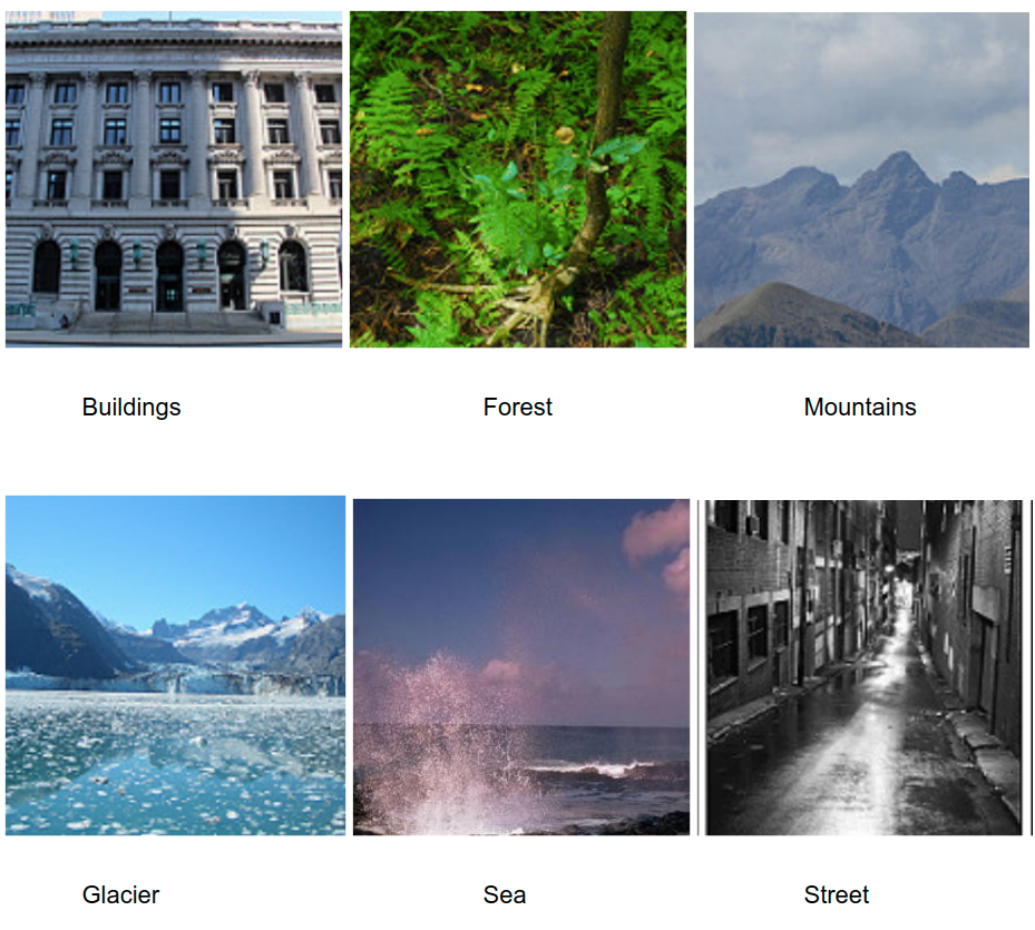 Data is king when it comes to training deep learning models. The first order of things was to choose a suitable dataset. Though we initially intended to use the same dataset originally used by AlexNet, ImageNet, for a direct comparison, we ran into issues of availability of data and preprocessing difficulties. We then opted for the Intel Image Classification dataset which has 6 labels with around 25,000 images with a pre-formatted size of 150x150.